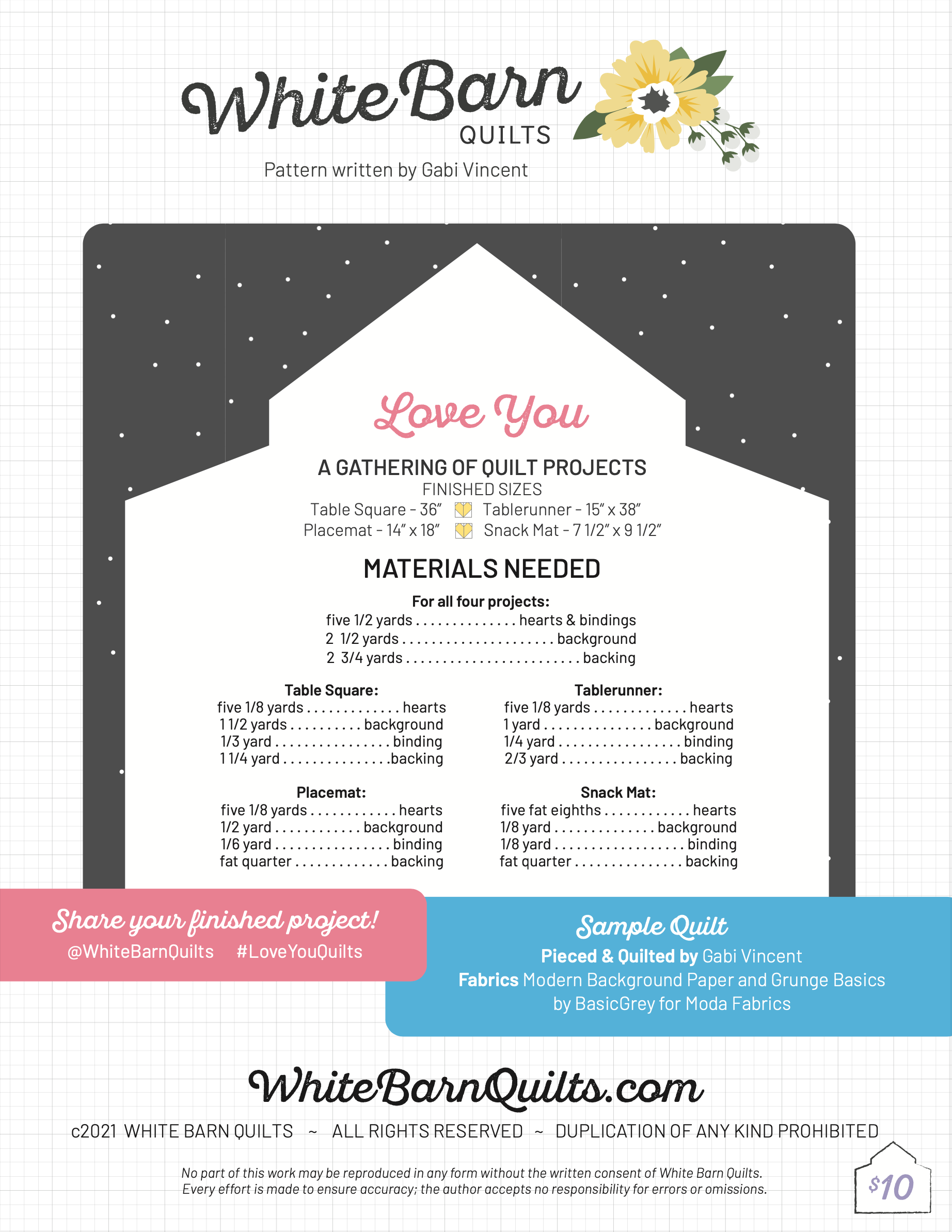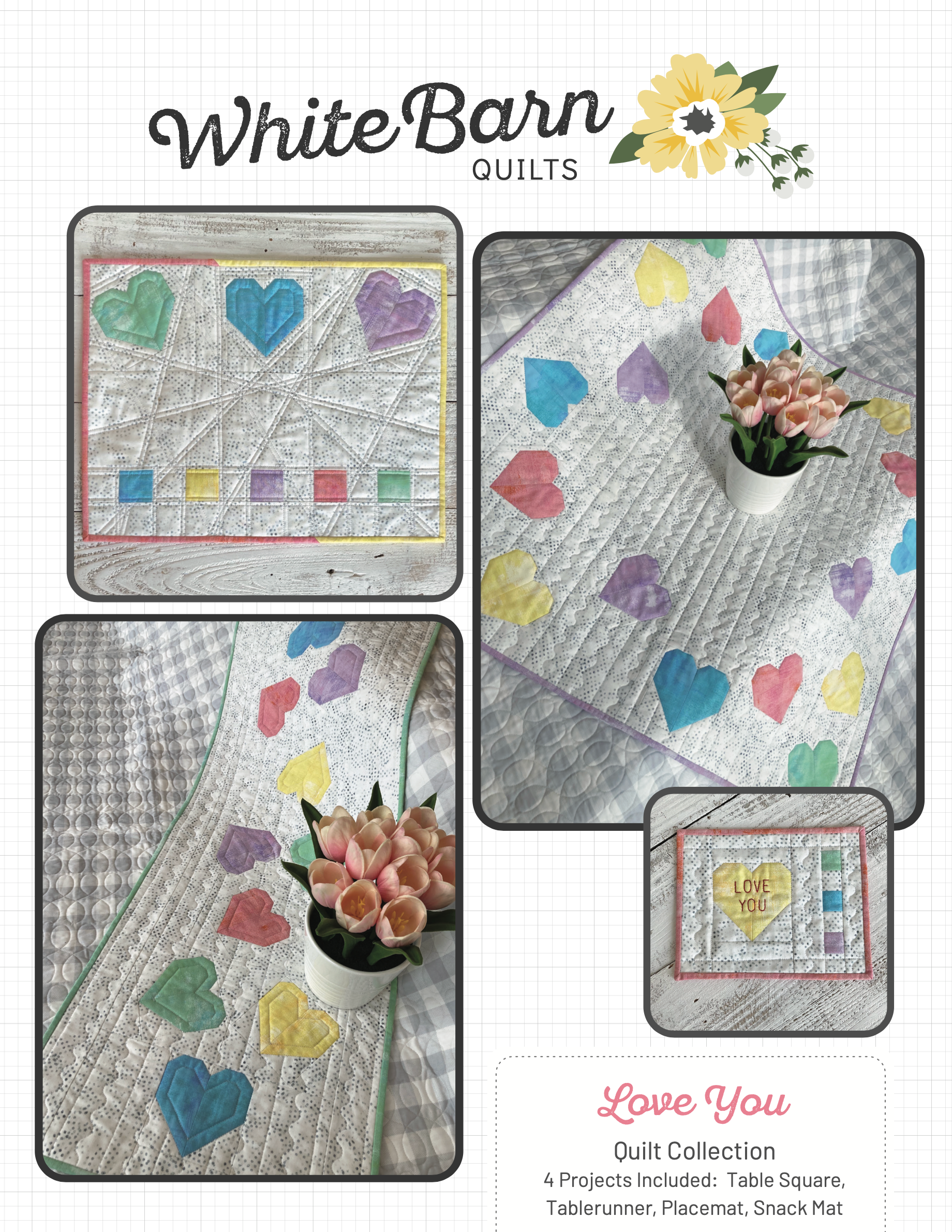 There's a sweet little lady in my life that loves "heart day" - she inspires me with her overflowing joy each day and reminds me to share my love freely. The Love You Gathering of Quilted Projects contains 4 projects and has just the right items to decorate your home or give as sweet gifts.